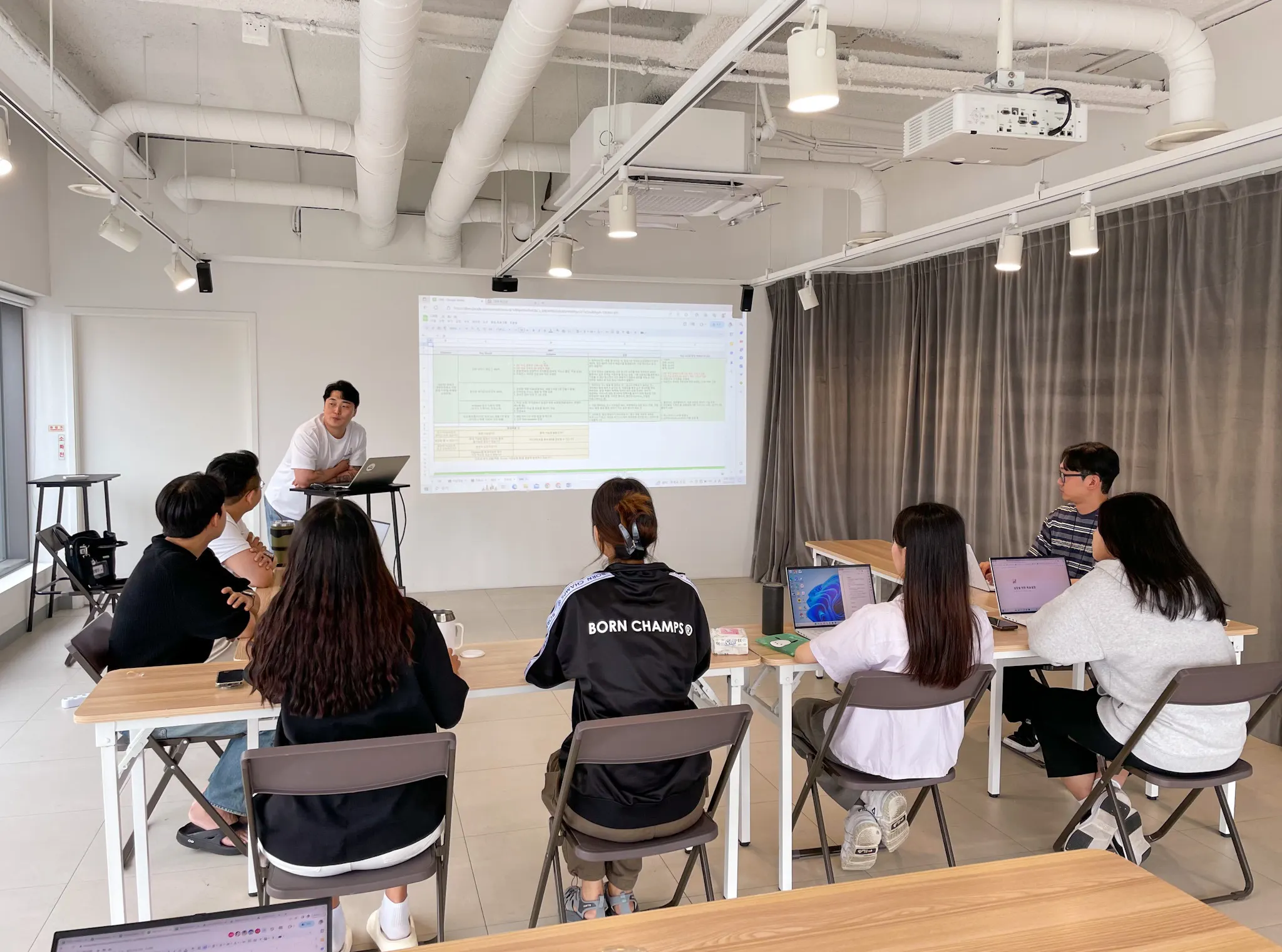 물론 처음에는 대표님을 ‘만형님’으로, 팀장님을 ‘문익님’으로 불러야 한다는 것이 생소하고 낯설어 입에 잘 붙지 않았는데요ㅎㅎ ‘님’문화가 직급에 따른 수직적인 분위기를 최소화하고 자유롭게 소통하는 분위기를 형성하는 데 확실히 영향을 주었다고 생각해요. 인턴인 저도 항상 ‘지윤님’으로 불러 주시기에 존중 받는 느낌이 들었고요. 모르는 것 뿐만 아니라 다른 것에 대해서도 편하게 의견을 개진할 수 있어서 좋았습니다.