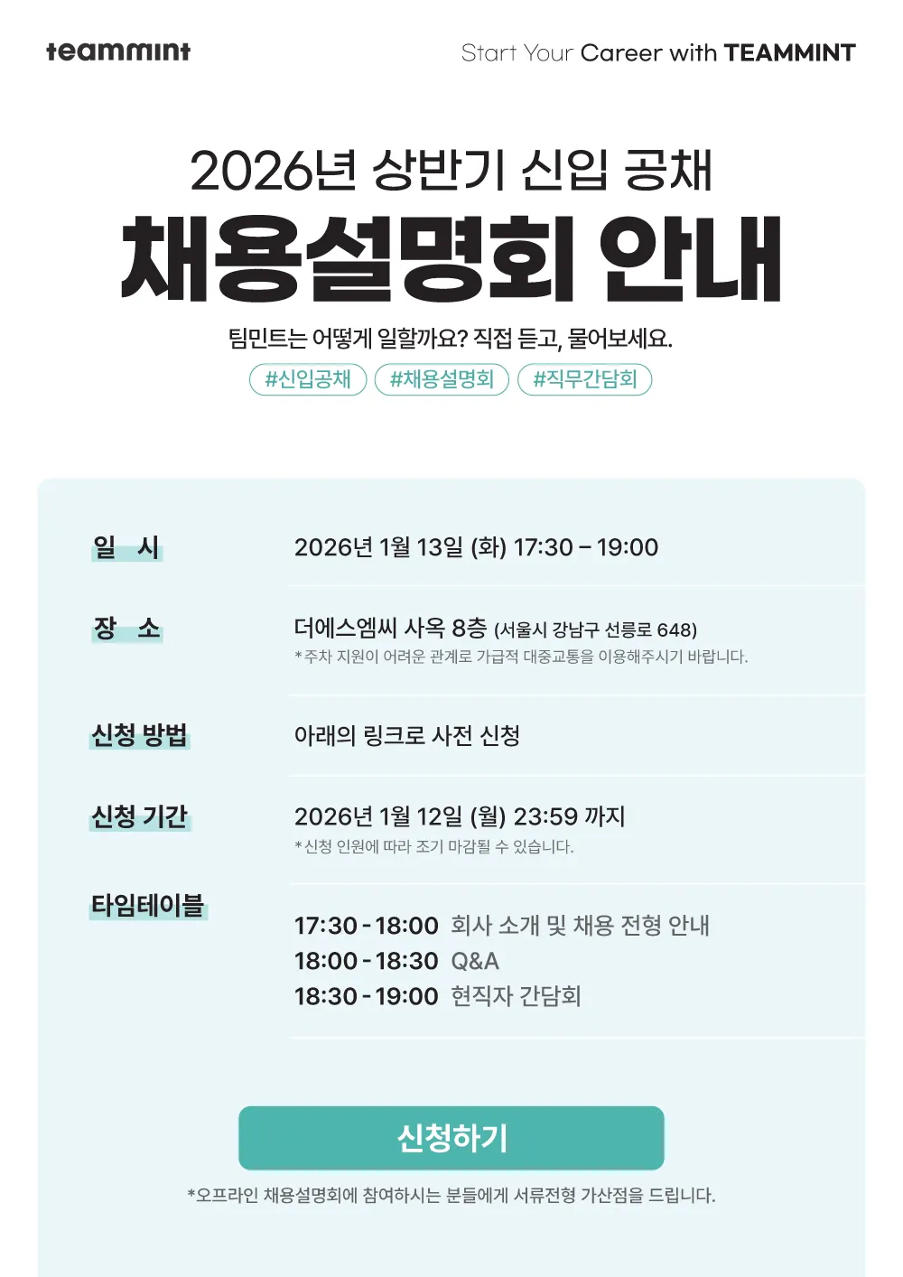 채용설명회 신청하기 (~1/12 23:59 까지)