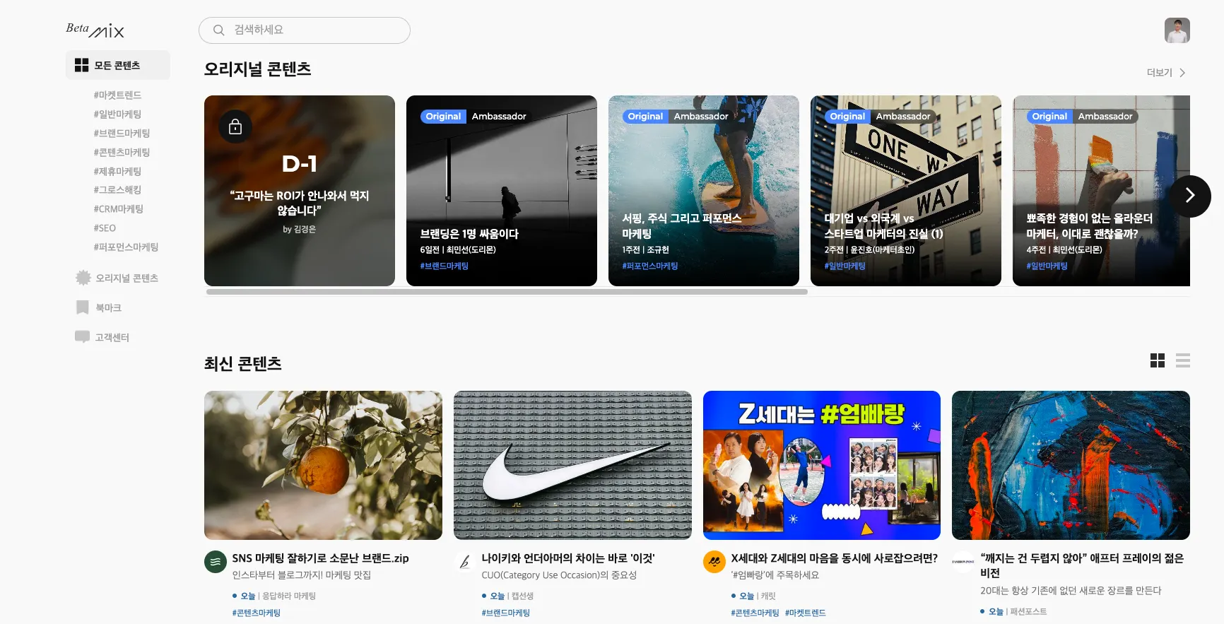 마케터들에게 필요한 양질의 콘텐츠를 찾아주는 큐레이션 서비스입니다.