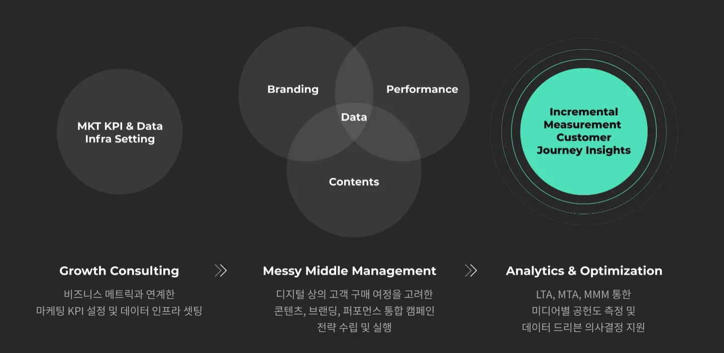 광고 운영 전반에 기술 인프라를 구축해 생산성을 혁신하고, 고도화된 데이터 기반의 마케팅 의사결정을 지원합니다.