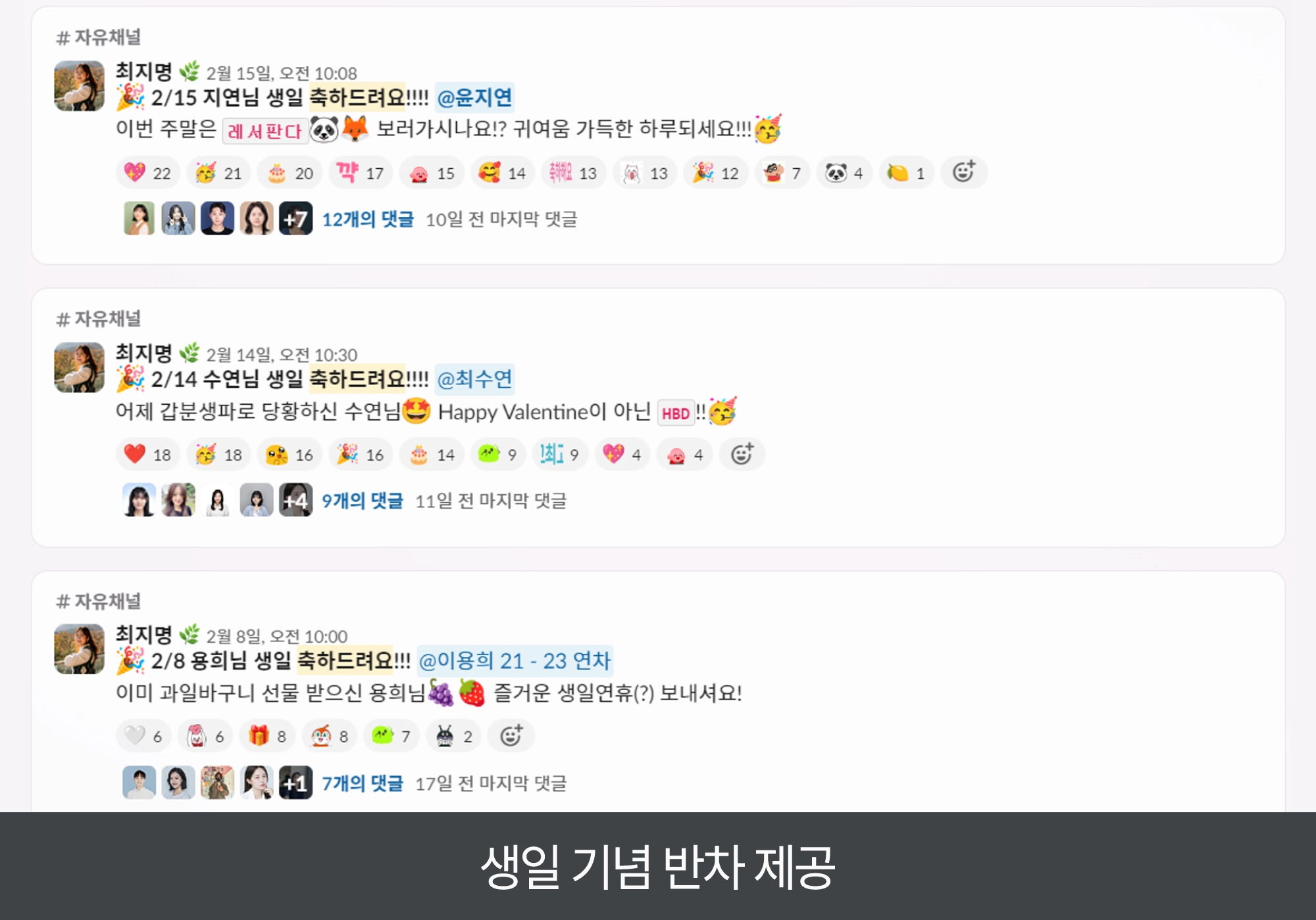 기쁜날을 더 즐겁게 보낼 수 있도록, 4만원 이내의 케이크 구입비와 생일 기념 반차를 제공합니다.